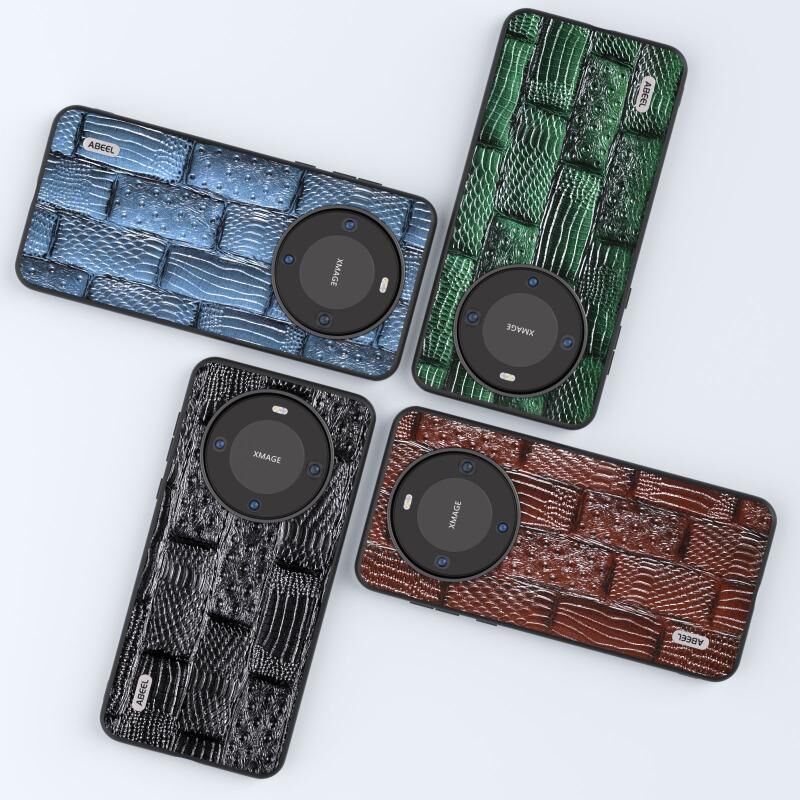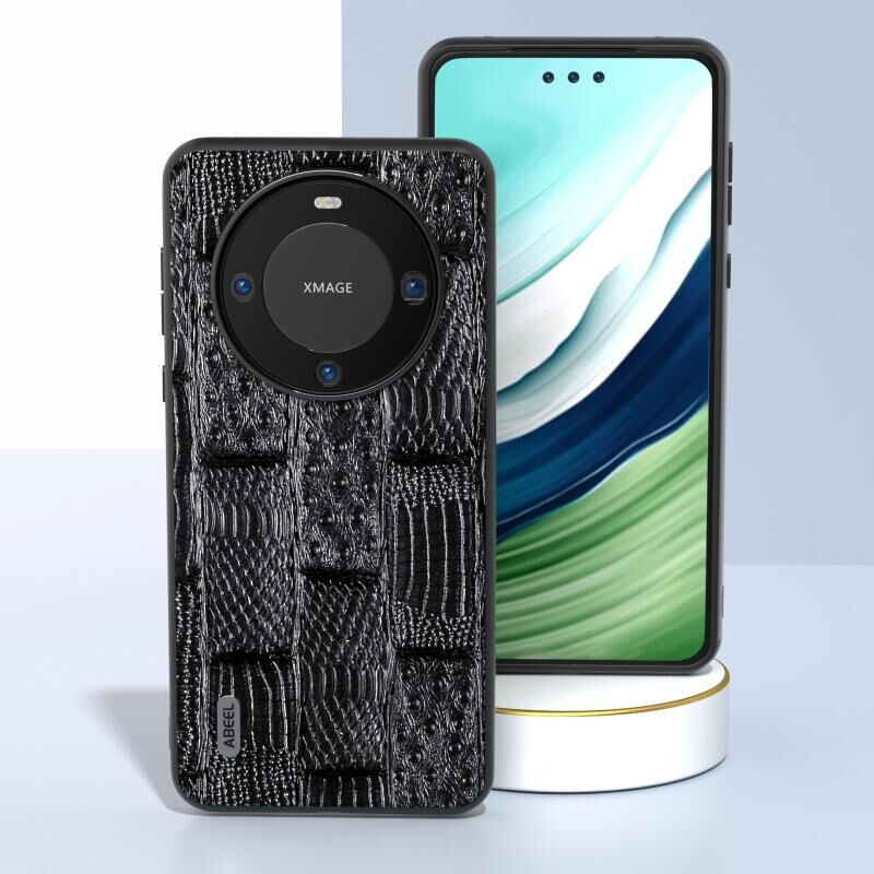 Θήκη τηλεφώνου Huawei Mate 60 ABEEL από γνήσιο δέρμα, σειρά υφής Mahjong (Μαύρο)