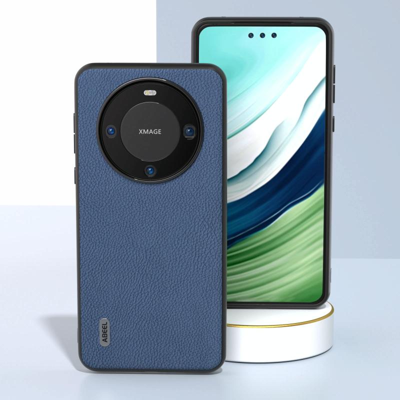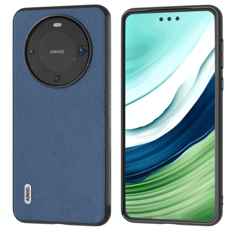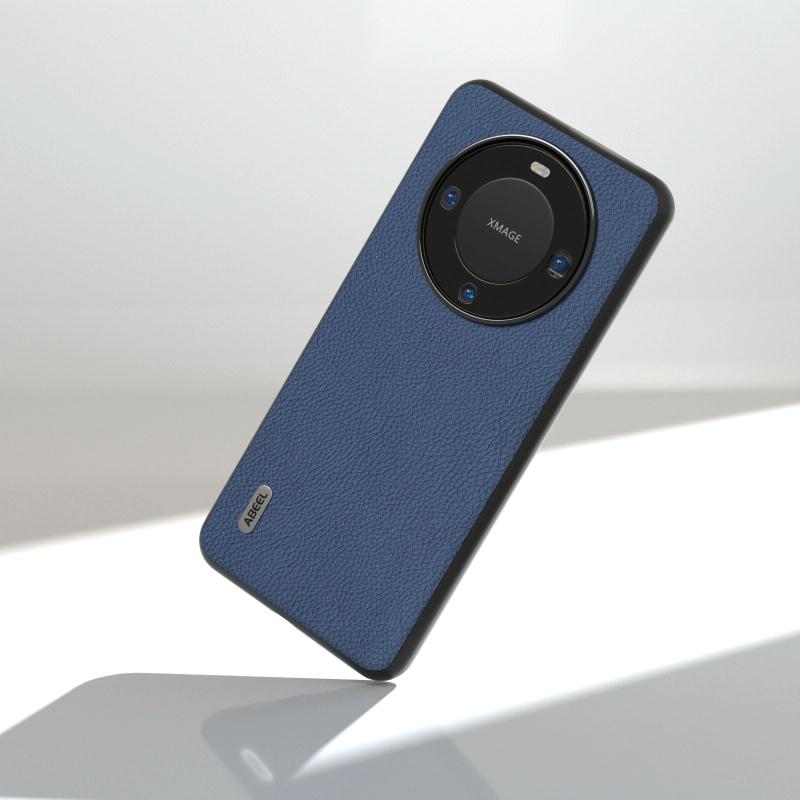 For Huawei Mate 60 ABEEL Genuine Leather + PC Litchi Texture Phone Case(Blue)