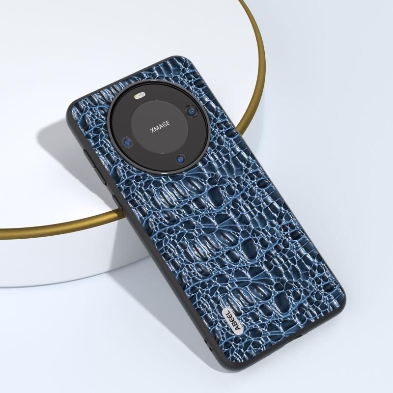 Θήκη τηλεφώνου Huawei Mate 60 ABEEL από γνήσιο δέρμα Sky Series Μαύρο περίγραμμα (Μπλε)
