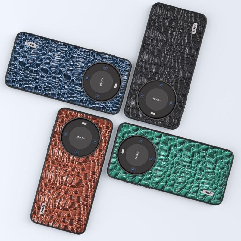 Θήκη τηλεφώνου Huawei Mate 60 ABEEL από γνήσιο δέρμα Sky Series Μαύρο περίγραμμα (πράσινο)