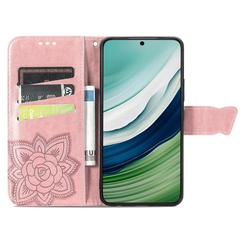 For Huawei Mate 60 Butterfly Love Flower Embossed Leather Phone Case(Rose Gold)