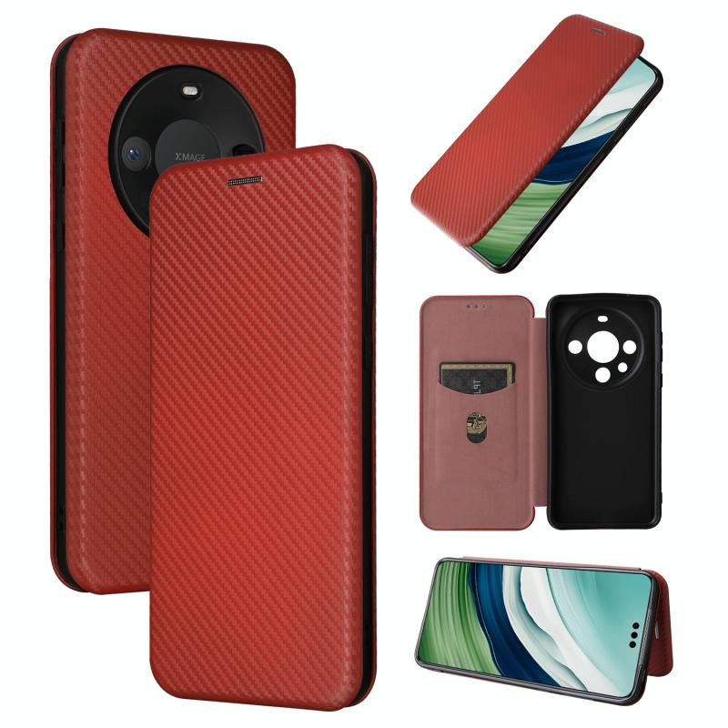 For Huawei Mate 60 Carbon Fiber Texture Flip Leather Phone Case(Brown)