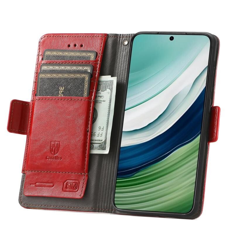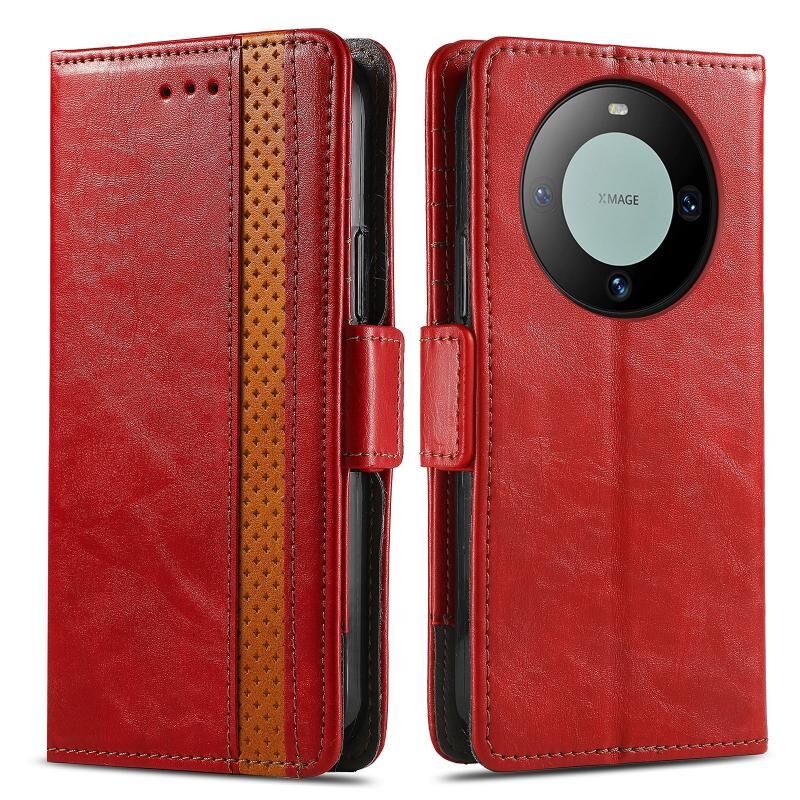 Για Huawei Mate 60 CaseNeo Splicing Διπλή μαγνητική πόρπη δερμάτινη θήκη τηλεφώνου (κόκκινο)