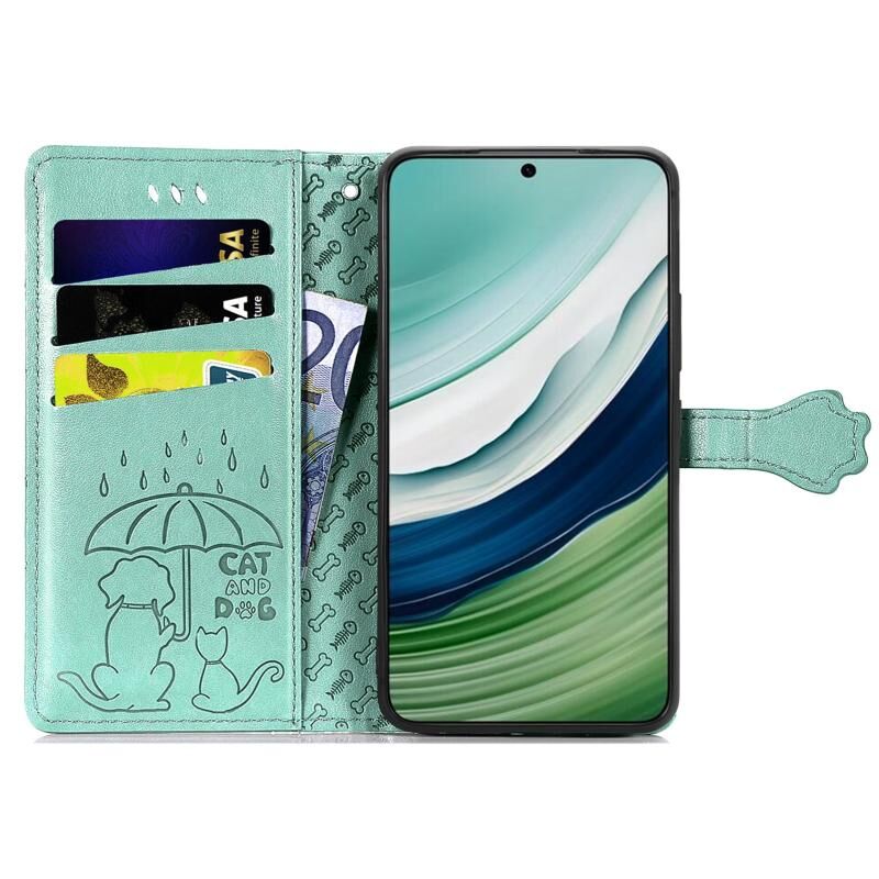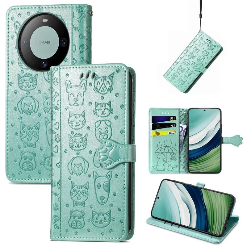 Θήκη τηλεφώνου Huawei Mate 60 με ανάγλυφο σχέδιο γάτας και σκύλου από δέρμα (πράσινο)