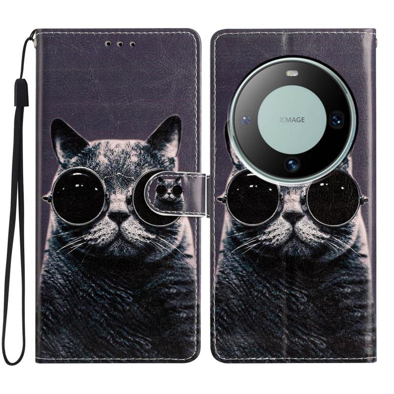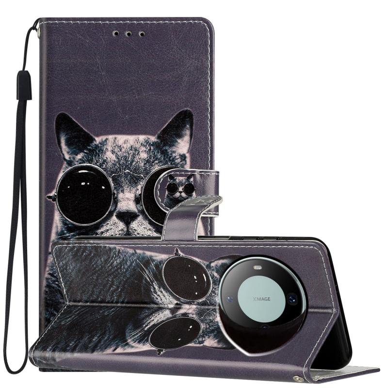 For Huawei Mate 60 Colored Drawing Leather Phone Case(Sunglasses Cat)