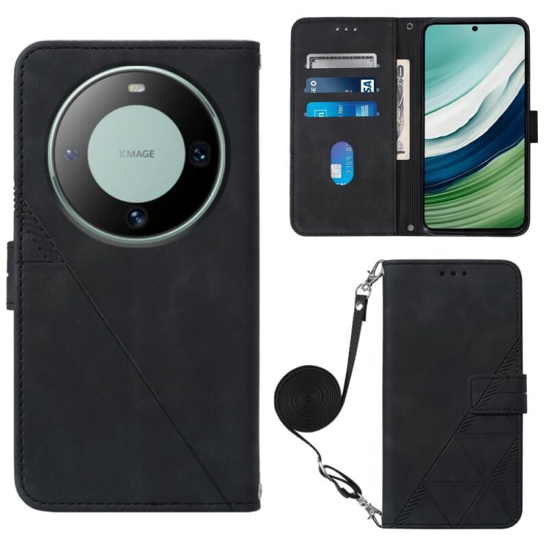 For Huawei Mate 60 Crossbody 3D Embossed Flip Leather Phone Case(Black)