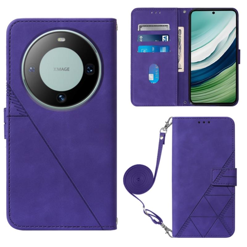 For Huawei Mate 60 Crossbody 3D Embossed Flip Leather Phone Case(Purple)