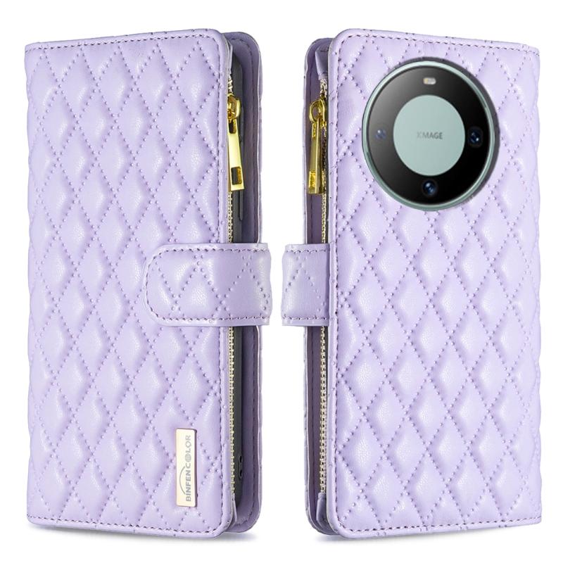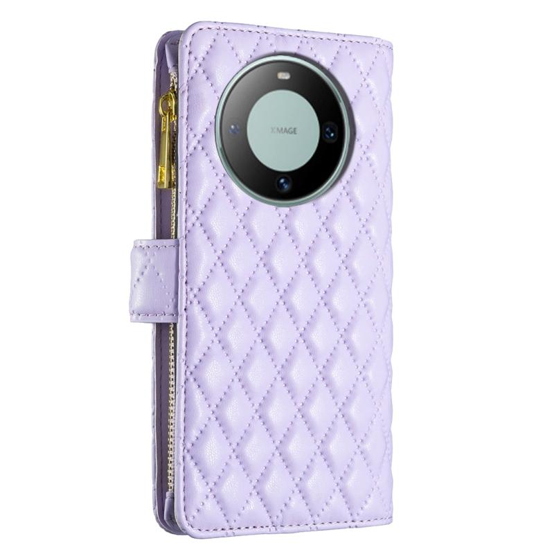 For Huawei Mate 60 Diamond Lattice Zipper Wallet Leather Flip Phone Case(Purple)