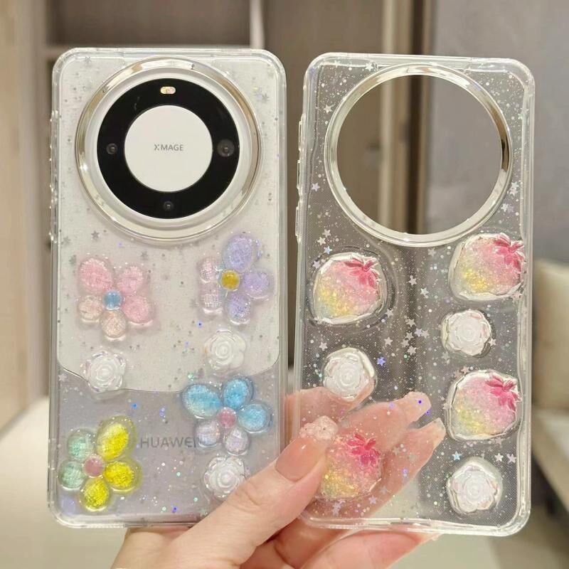 Για Huawei Mate 60 Electroplated Frame 3D φράουλα λουλούδι TPU τηλέφωνο υπόθεση (ροζ φράουλα)