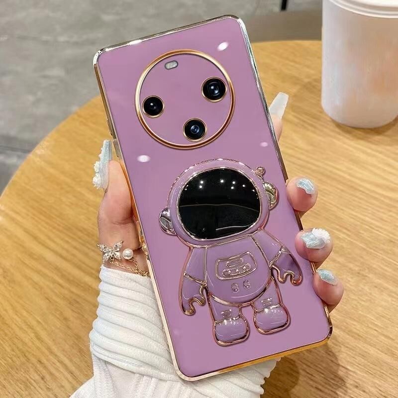 Θήκη τηλεφώνου για Huawei Mate 60 με επιμετάλλωση και στήριγμα αστροναύτη (Μωβ)