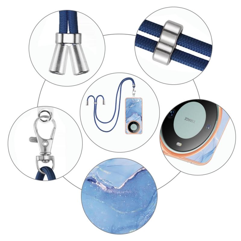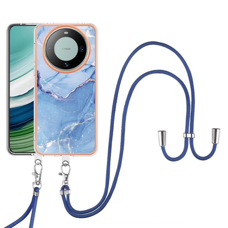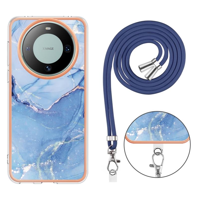 For Huawei Mate 60 Electroplating Marble Dual-side IMD Phone Case with Lanyard(Blue 018)