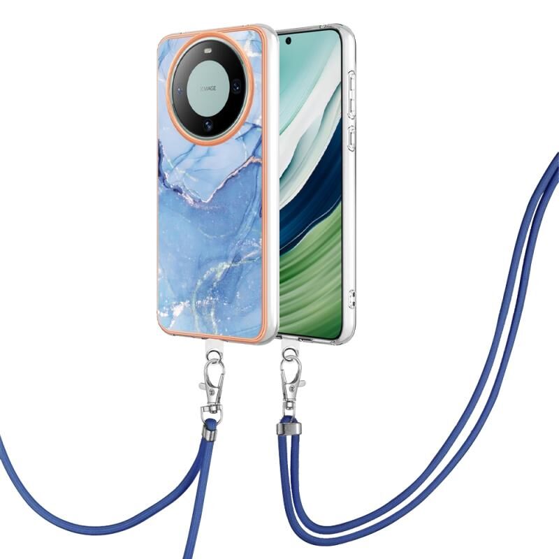 Θήκη τηλεφώνου Huawei Mate 60 με επιμετάλλωση, σχέδιο μάρμαρου, διπλής όψης IMD με κορδόνι (Μωβ 002)