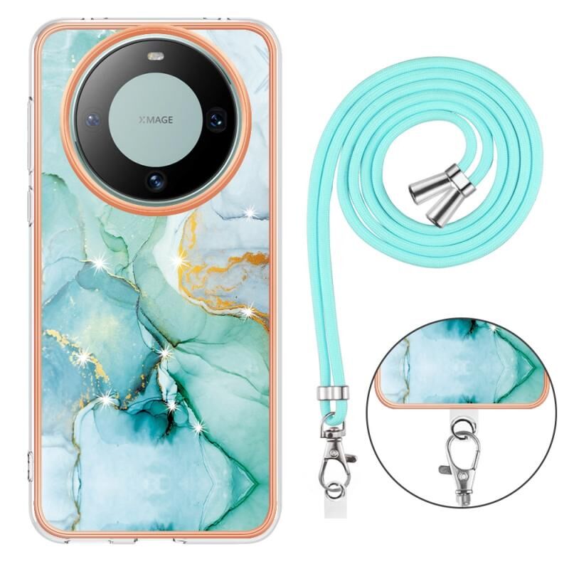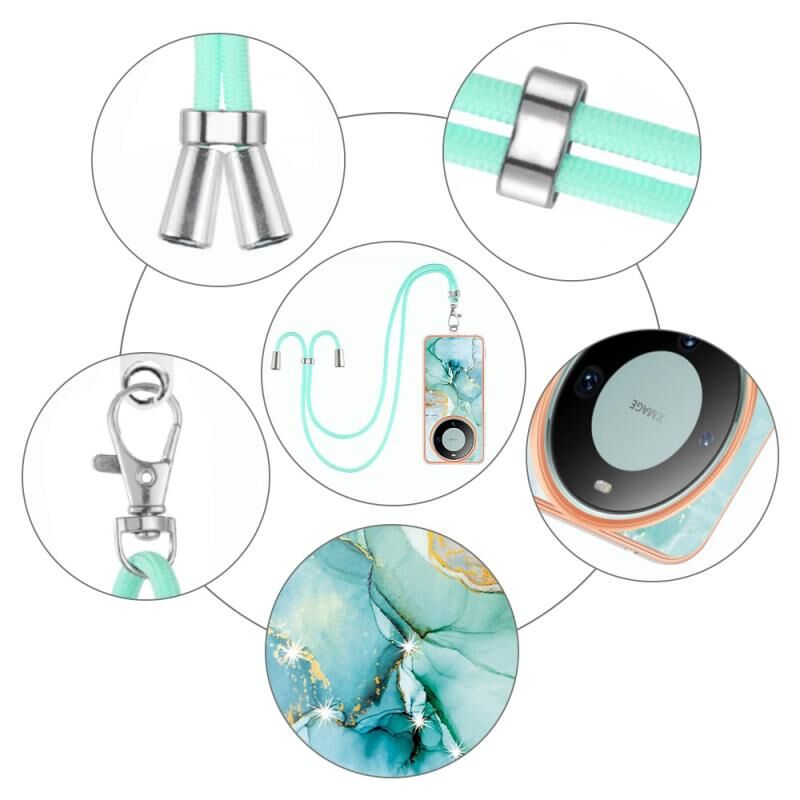 Θήκη τηλεφώνου Huawei Mate 60 με επιμετάλλωση, σχέδιο μάρμαρου, διπλής όψης IMD με κορδόνι (Μωβ 002)