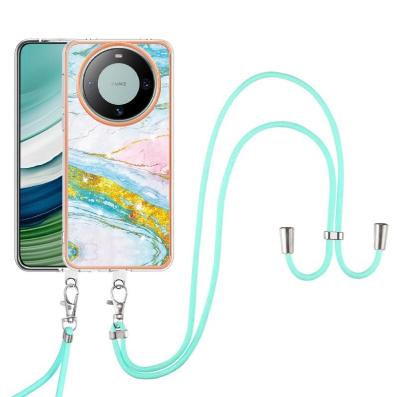Θήκη τηλεφώνου Huawei Mate 60 με επιμετάλλωση, σχέδιο μάρμαρου, διπλής όψης IMD με κορδόνι (Μωβ 002)