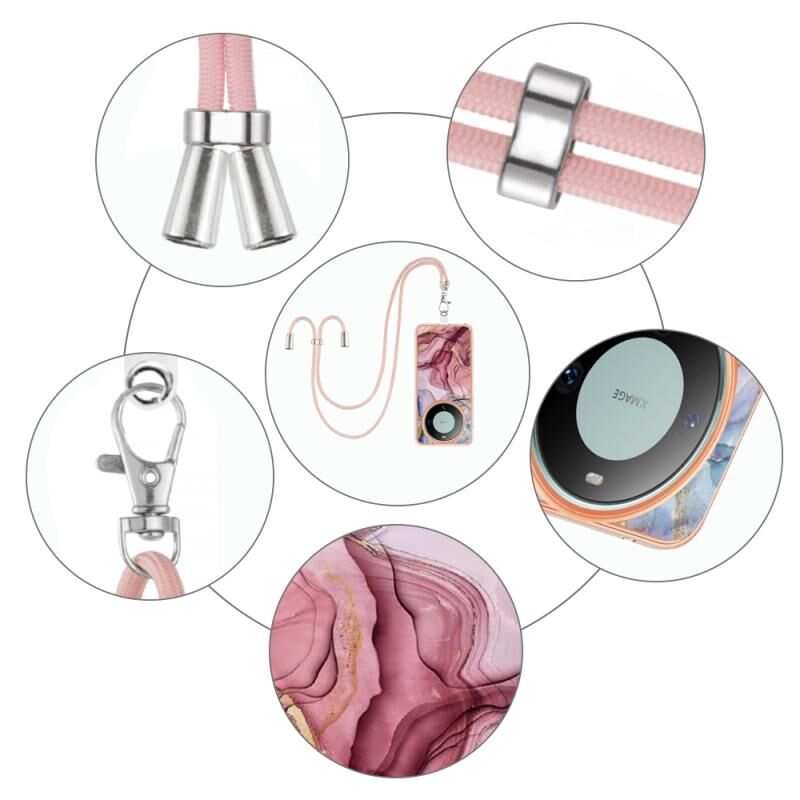 Θήκη τηλεφώνου Huawei Mate 60 με επιμετάλλωση, σχέδιο μάρμαρου, διπλής όψης IMD με κορδόνι (Ροζέ Κόκκινο 014)