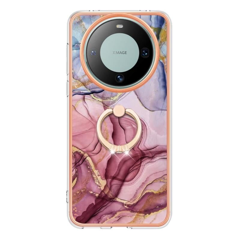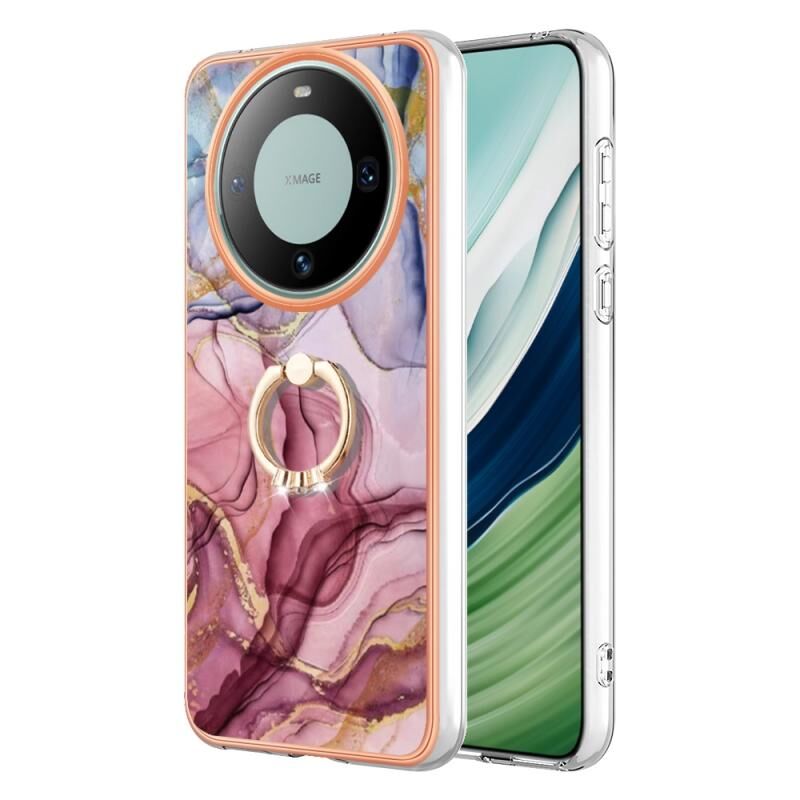 Θήκη τηλεφώνου Huawei Mate 60 με επιμετάλλωση, σχέδιο μάρμαρου, διπλής όψης IMD με δαχτυλίδι (Ροζέ Κόκκινο 014)