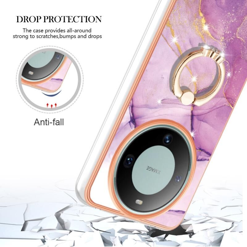 Θήκη κινητού τηλεφώνου Huawei Mate 60 με ηλεκτρολυτική επίστρωση, σχέδιο μάρμαρου IMD, από TPU με δακτύλιο στήριξης (Λευκό 006)