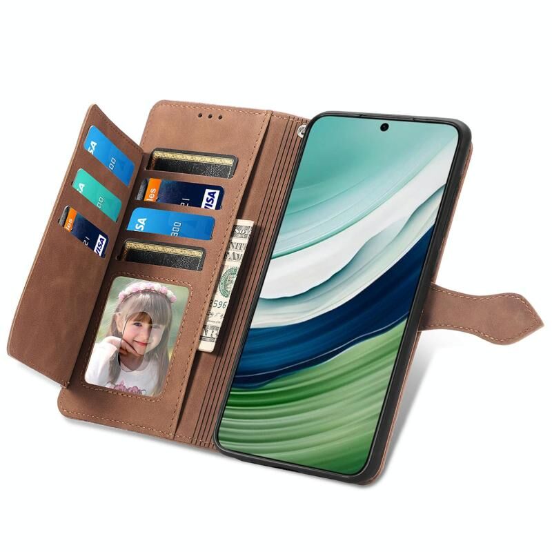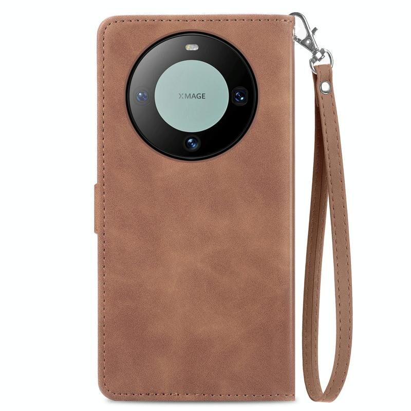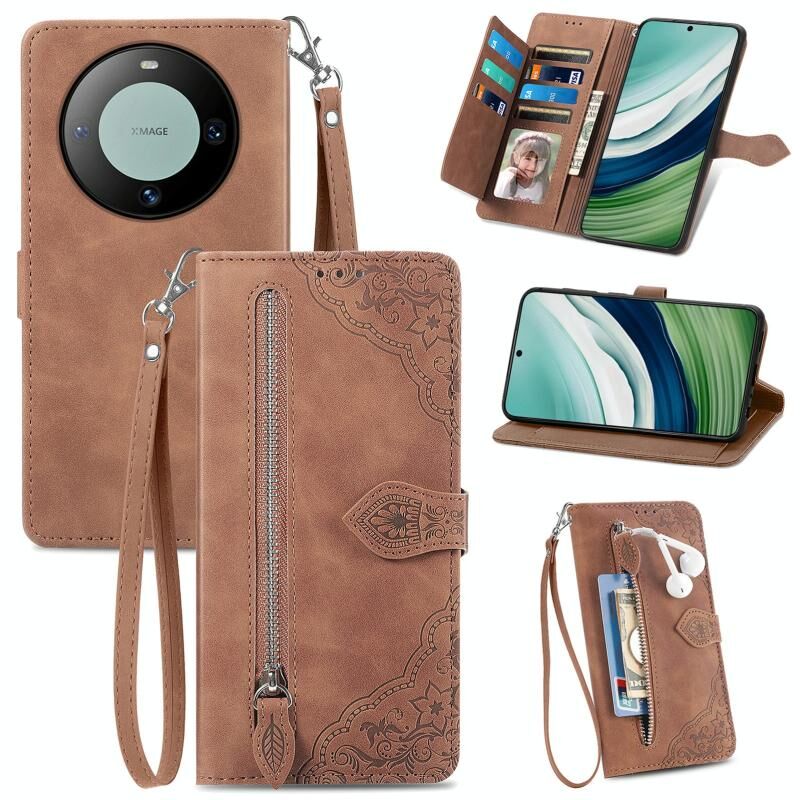 Για Huawei Mate 60 ανάγλυφο λουλούδι φερμουάρ δερμάτινη θήκη τηλεφώνου (Καφέ)