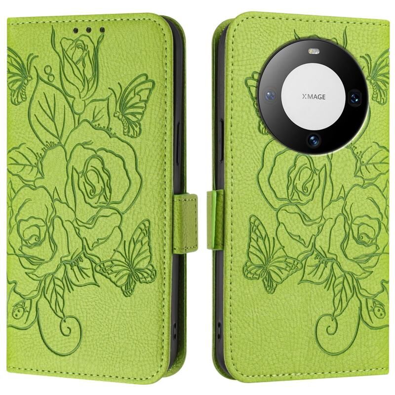 Για Huawei Mate 60 ανάγλυφο Rose RFID Anti-theft δερμάτινη θήκη τηλεφώνου (πράσινο)