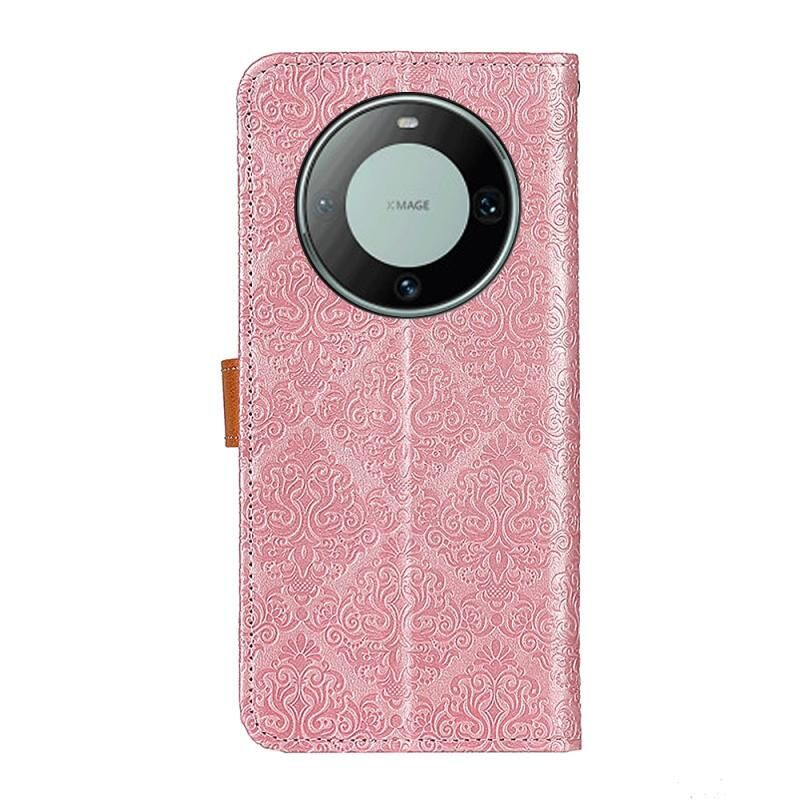 Για Huawei Mate 60 Ευρωπαϊκή Floral ανάγλυφη δερμάτινη θήκη τηλεφώνου (ροζ)