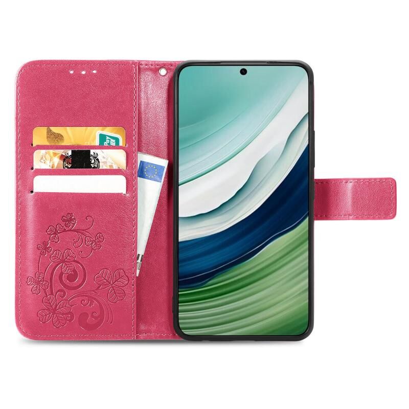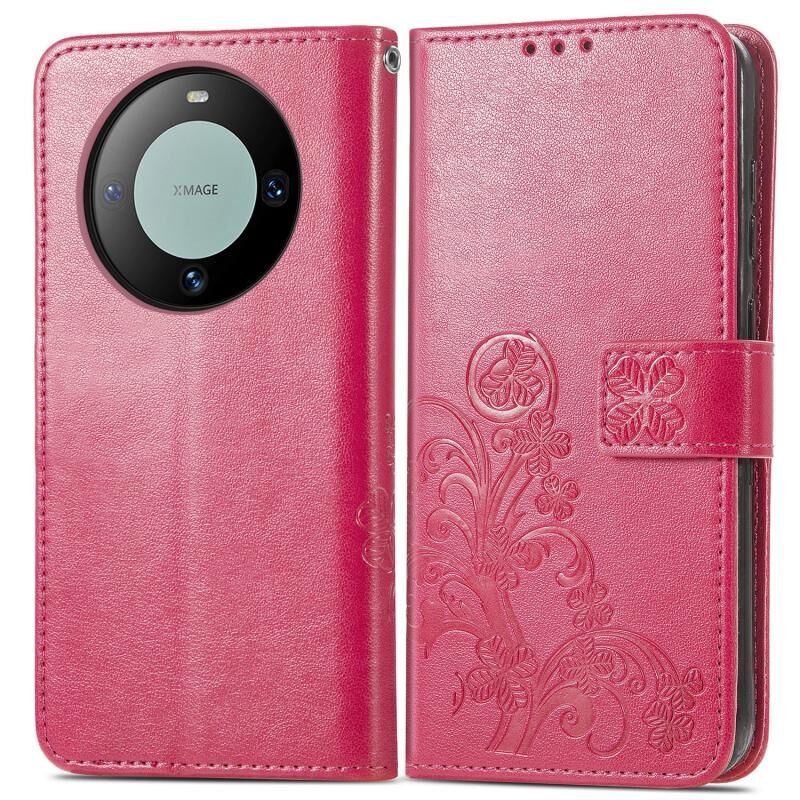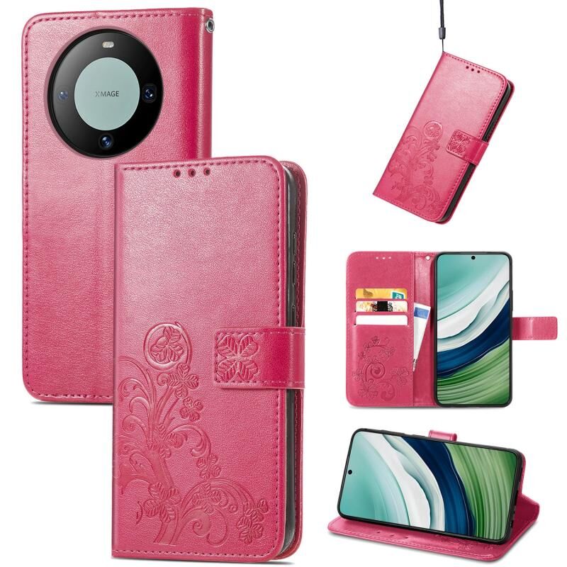 Για Huawei Mate 60 τετράφυλλο κούμπωμα ανάγλυφη δερμάτινη θήκη τηλεφώνου (κόκκινο)