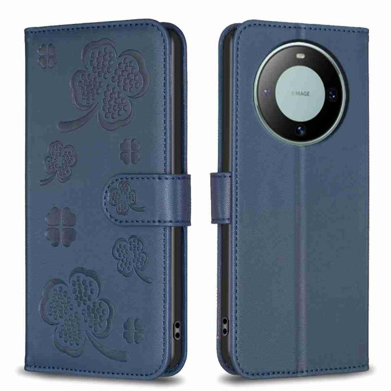 For Huawei Mate 60 Four-leaf Embossed Leather Phone Case(Blue)