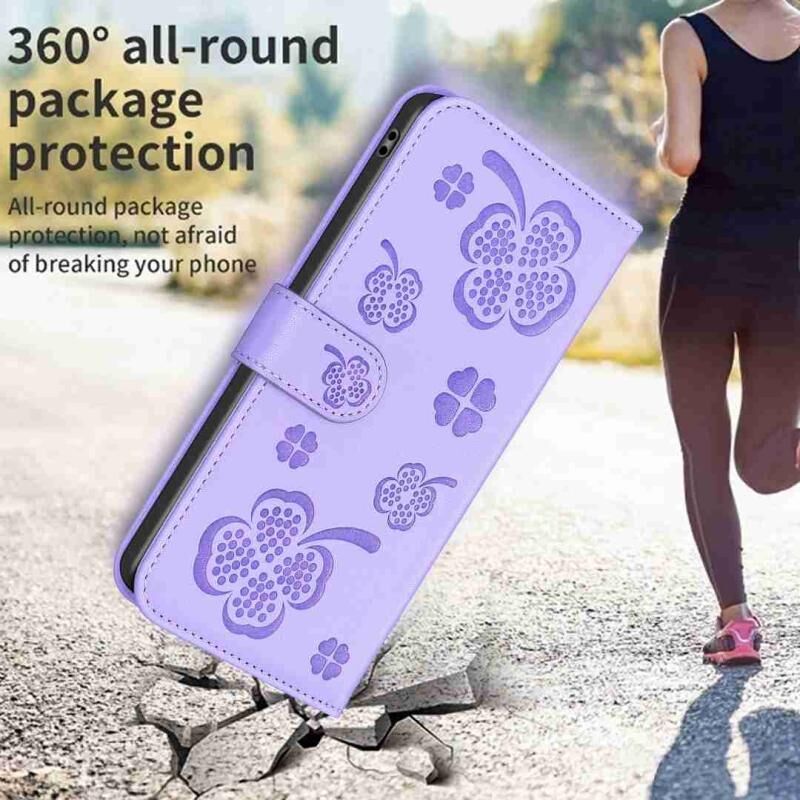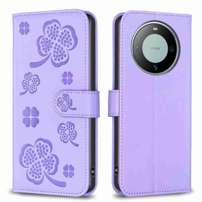 For Huawei Mate 60 Four-leaf Embossed Leather Phone Case(Purple)