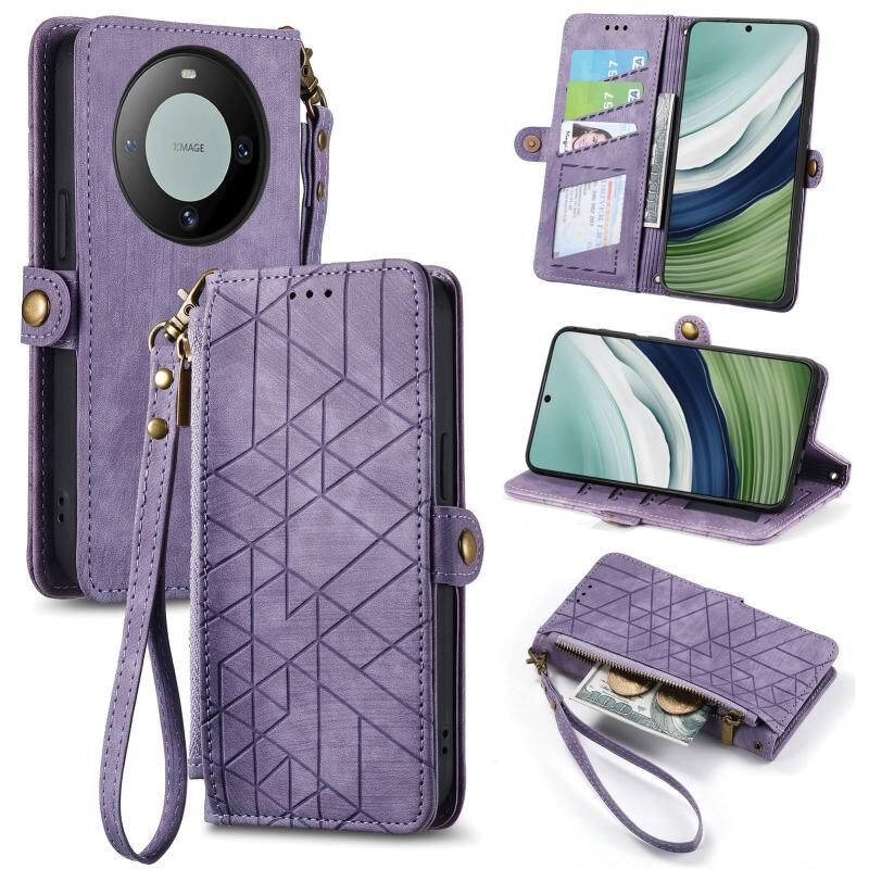 Για Huawei Mate 60 γεωμετρική φερμουάρ πορτοφόλι πλευρά πόρπη δερμάτινη θήκη τηλεφώνου (μωβ)
