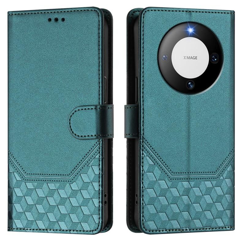 Για Huawei Mate 60 Honeycomb ανάγλυφο RFID δερμάτινη θήκη τηλεφώνου (Peacock Green)