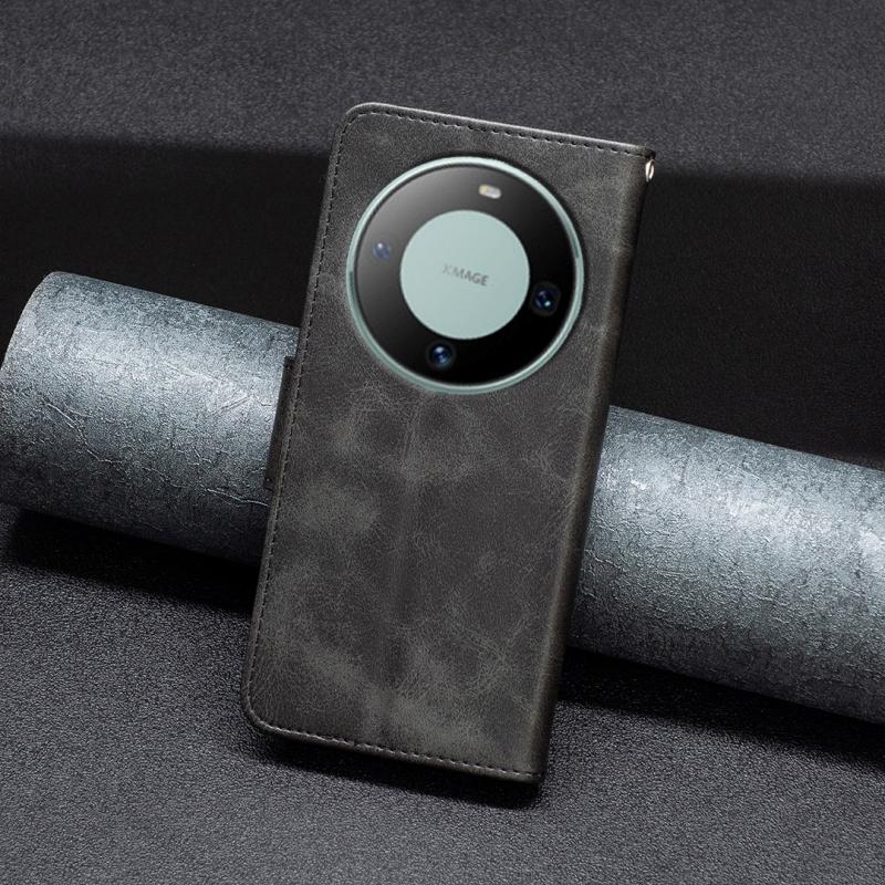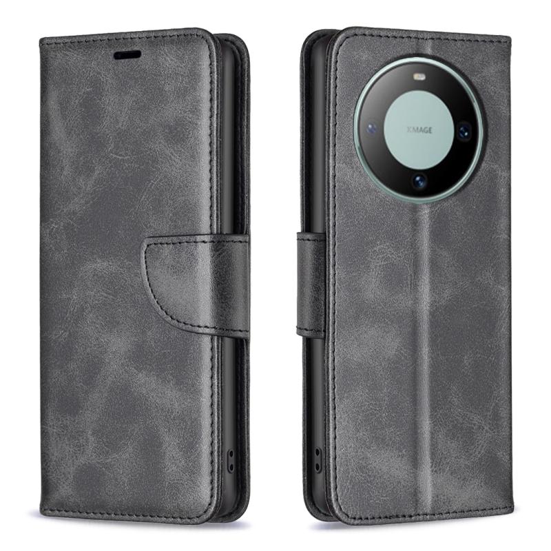 For Huawei Mate 60 Lambskin Texture Pure Color Flip Leather Phone Case(Black)