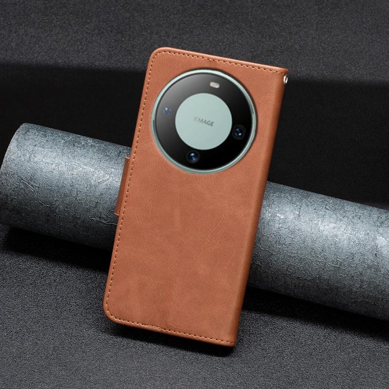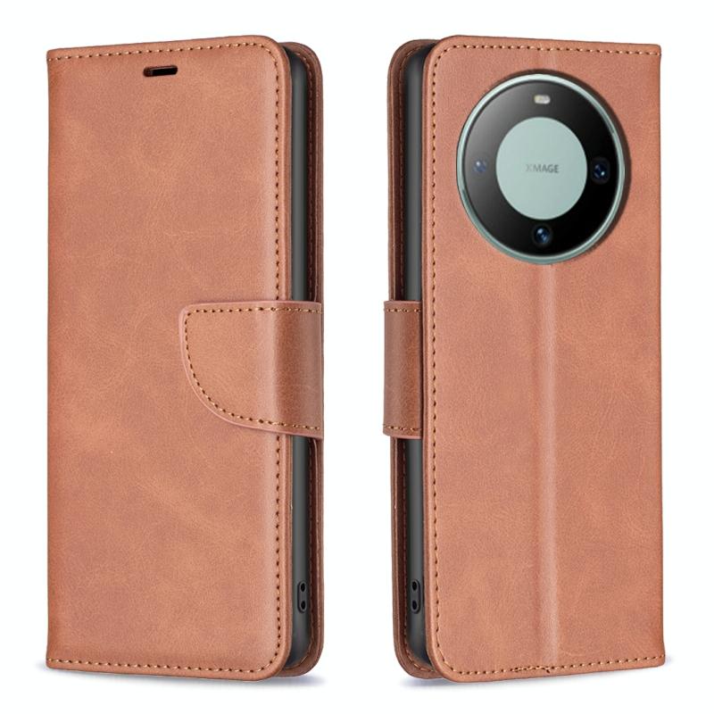 For Huawei Mate 60 Lambskin Texture Pure Color Flip Leather Phone Case(Brown)
