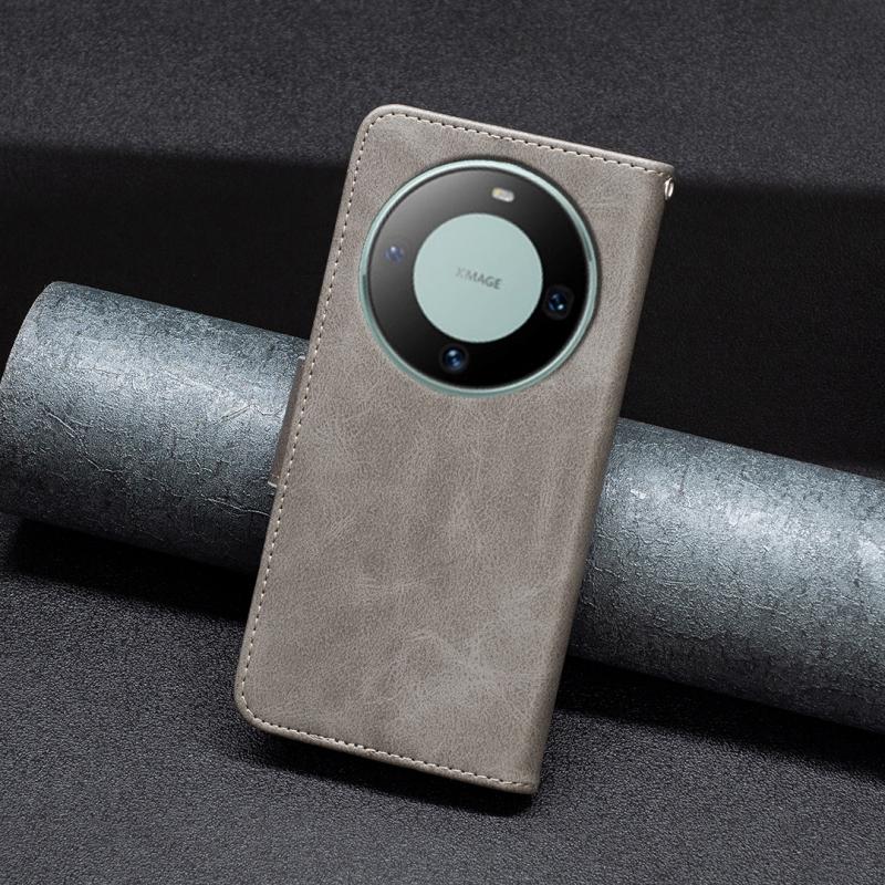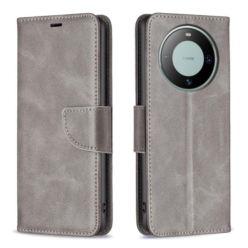 For Huawei Mate 60 Lambskin Texture Pure Color Flip Leather Phone Case(Grey)