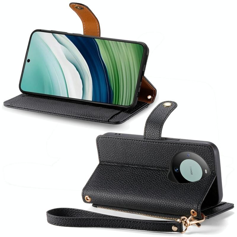 Για Huawei Mate 60 αγάπη φερμουάρ Lanyard φερμουάρ δερμάτινη θήκη τηλεφώνου (μαύρο)