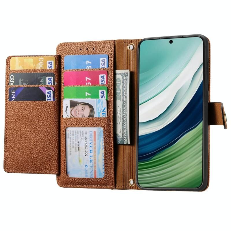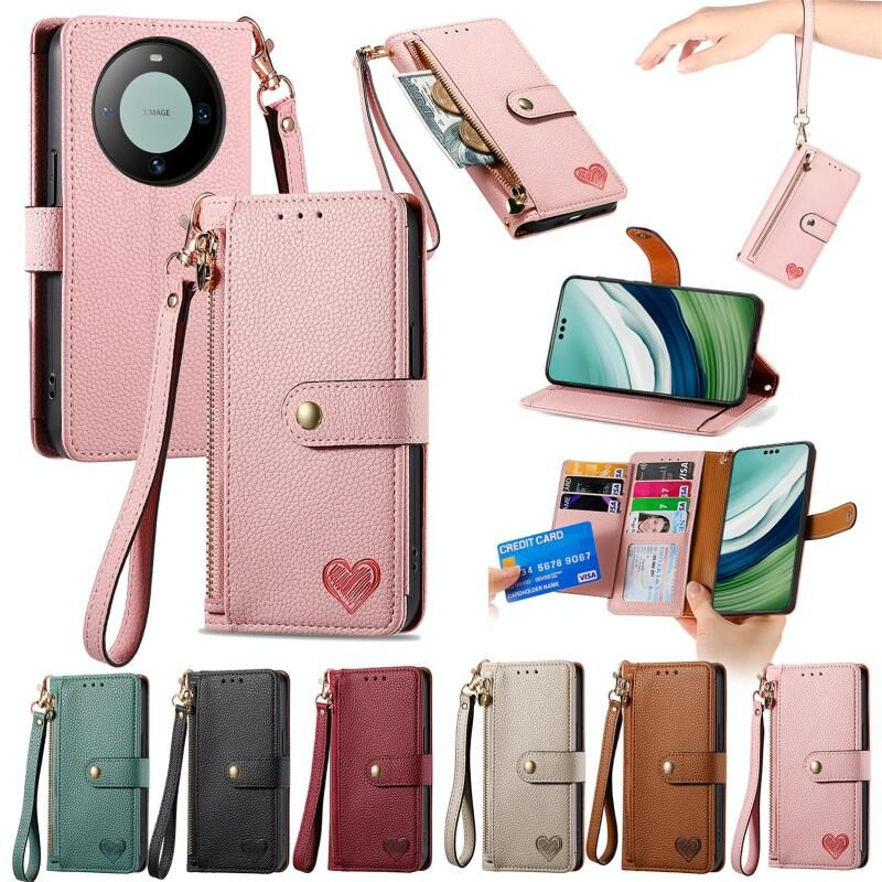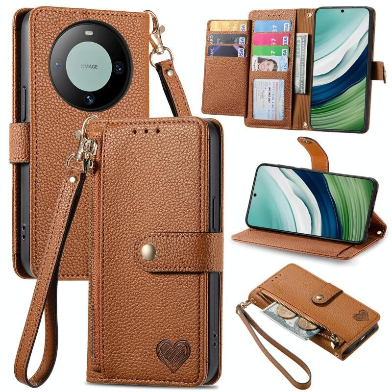 Για Huawei Mate 60 αγάπη φερμουάρ Lanyard φερμουάρ δερμάτινη θήκη τηλεφώνου (Καφέ)