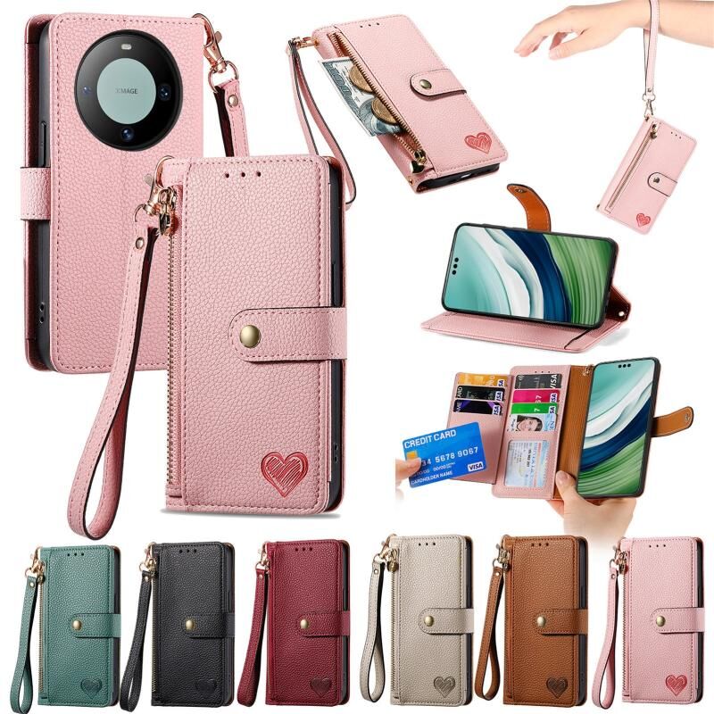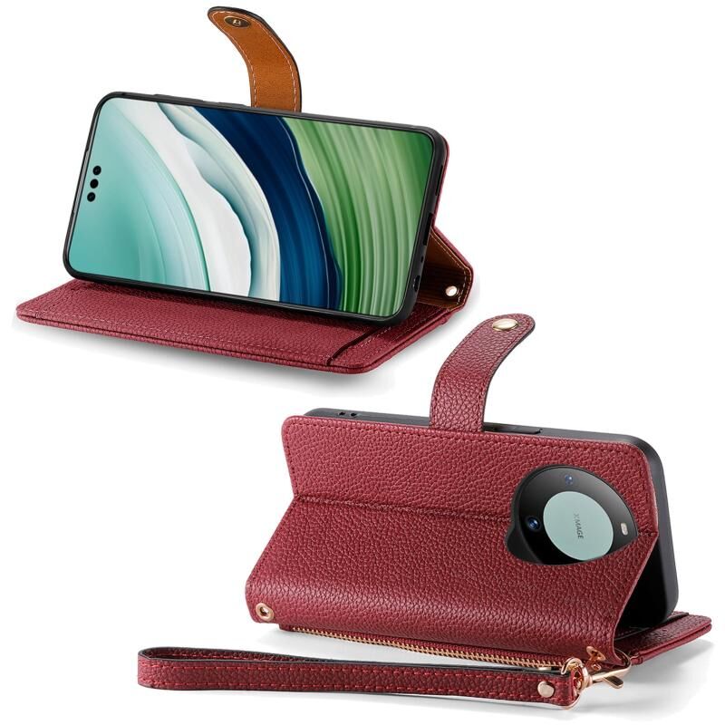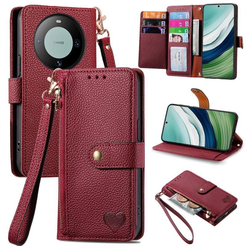 Για Huawei Mate 60 αγάπη φερμουάρ Lanyard φερμουάρ δερμάτινη θήκη τηλεφώνου (Κόκκινο)