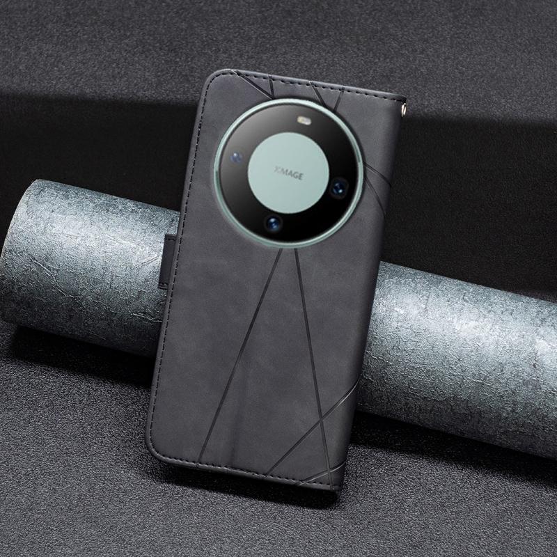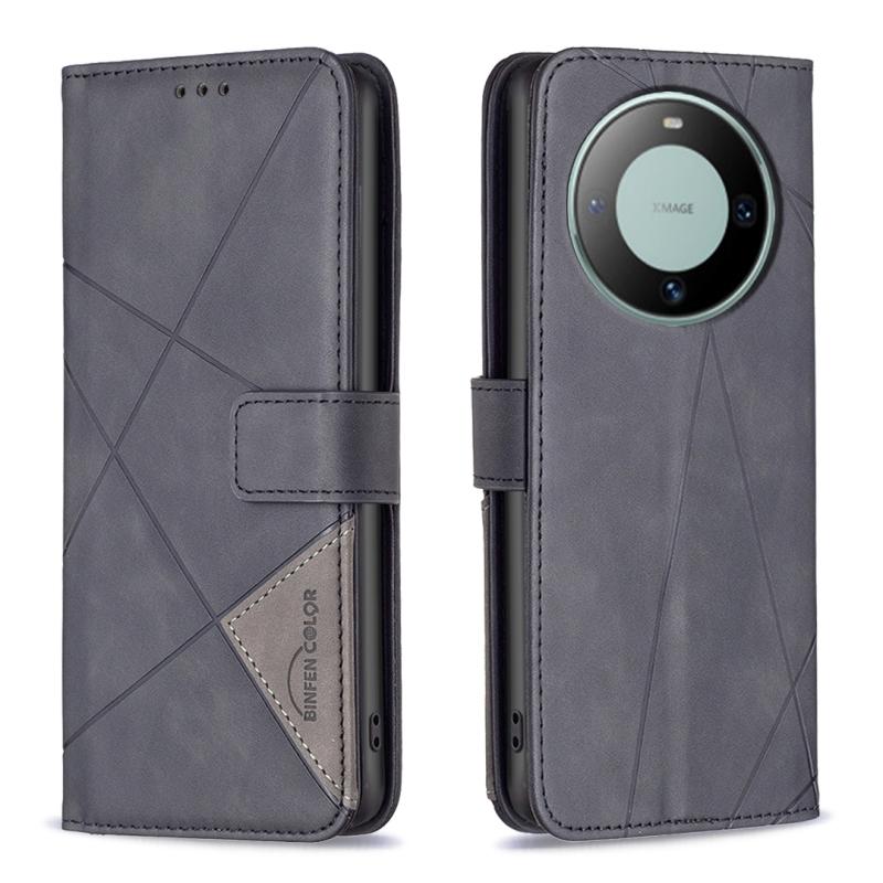 Θήκη Huawei Mate 60 Δερμάτινη με Μαγνητικό Κούμπωμα & Ρομβοειδές Σχέδιο (Μαύρο)