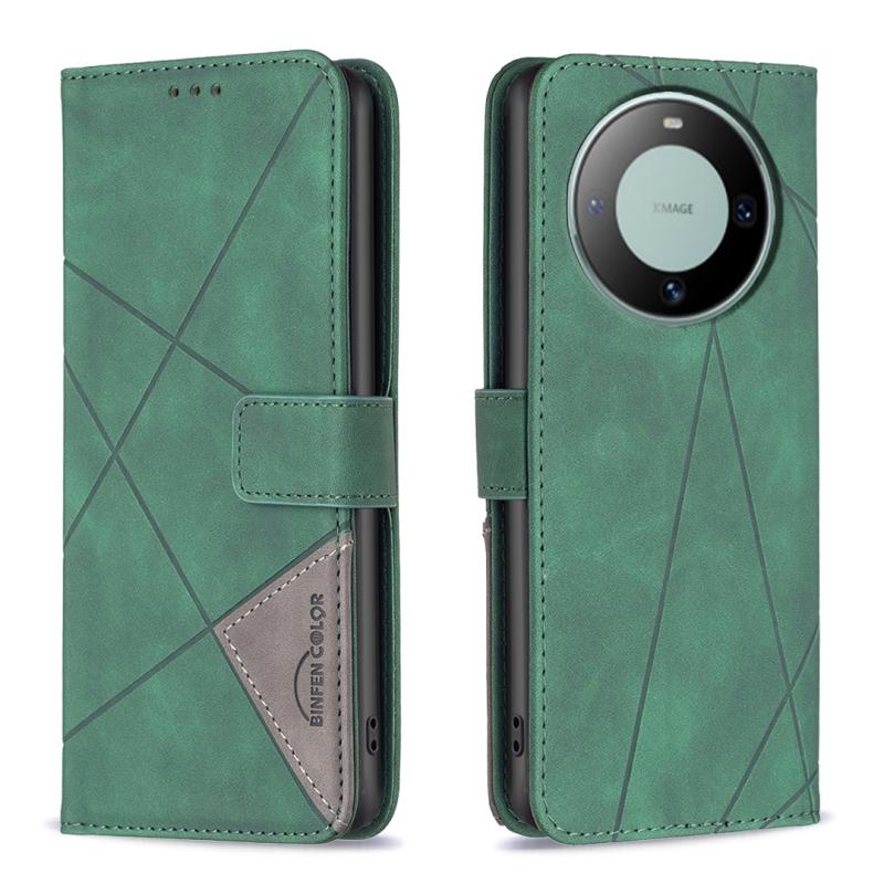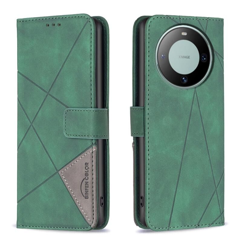 For Huawei Mate 60 Magnetic Buckle Rhombus Texture Leather Phone Case(Green)