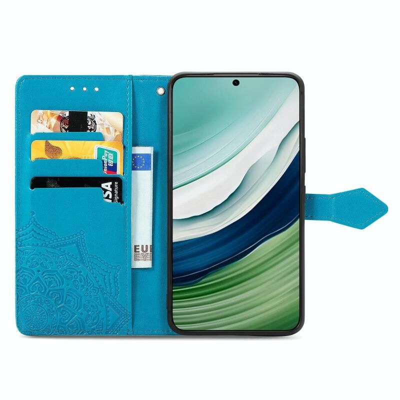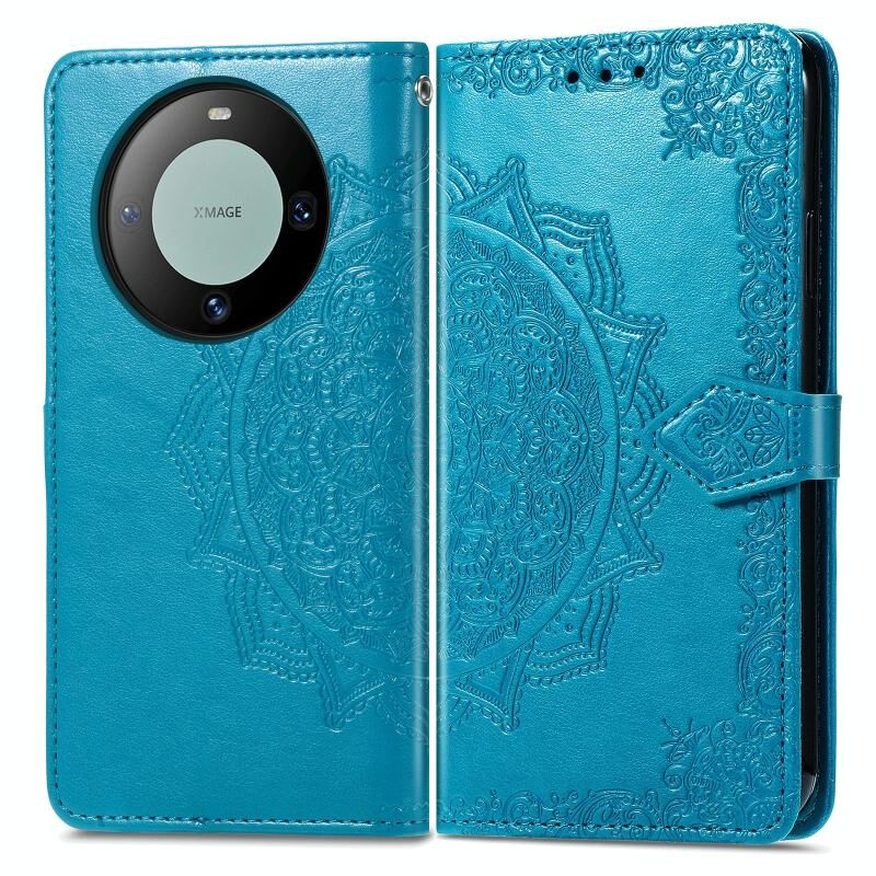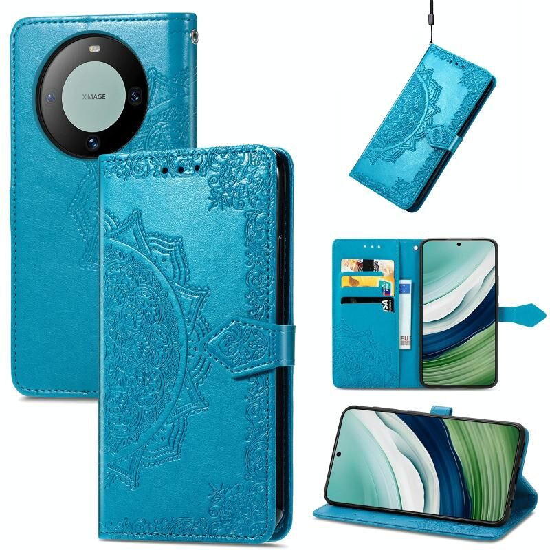 Για Huawei Mate 60 Mandala λουλούδι ανάγλυφο δερμάτινη θήκη τηλεφώνου (μπλε)