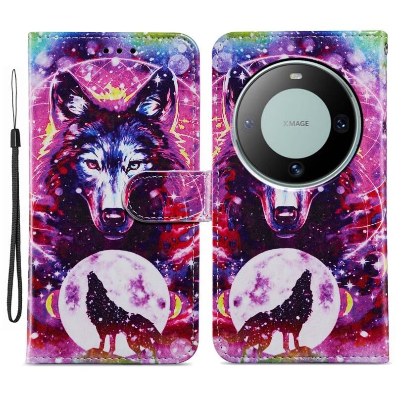 Θήκη τηλεφώνου Huawei Mate 60 από δέρμα με οριζόντιο άνοιγμα και ζωγραφισμένο σχέδιο (Λύκος Τοτέμ)