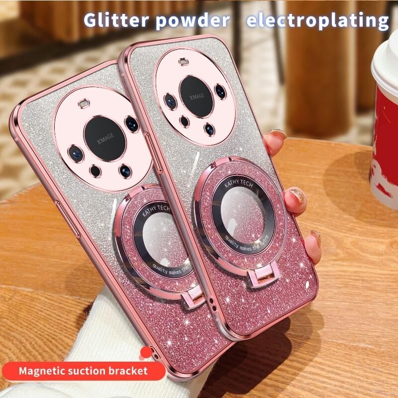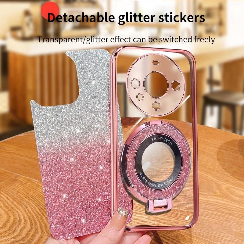 Για το Huawei Mate 60 επιμεταλλωμένο βαθμιδωτή Glitter στρογγυλή θήκη τηλεφώνου TPU κατόχου (ασημί)