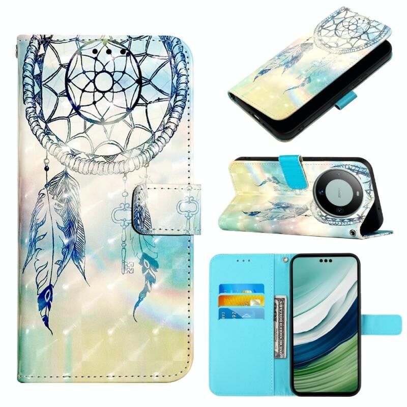 Θήκη τηλεφώνου από δέρμα με οριζόντιο άνοιγμα και τρισδιάστατη ζωγραφική για Huawei Mate 60 Pro (Όνειρο Αιολικών Κουδουνιών)