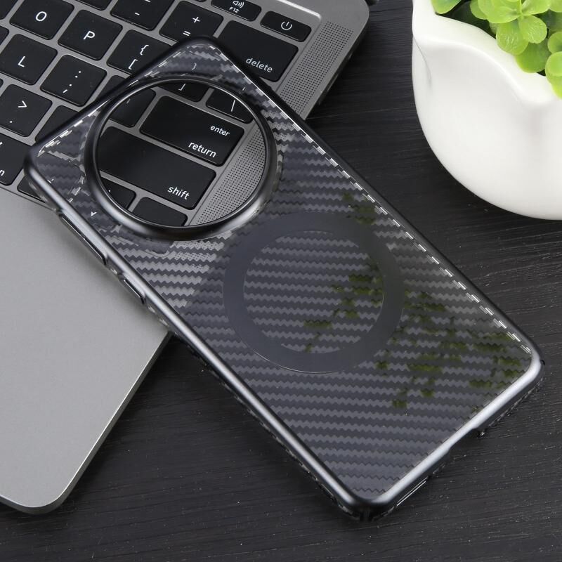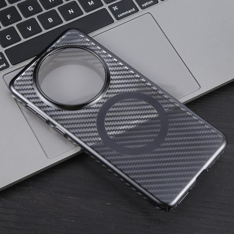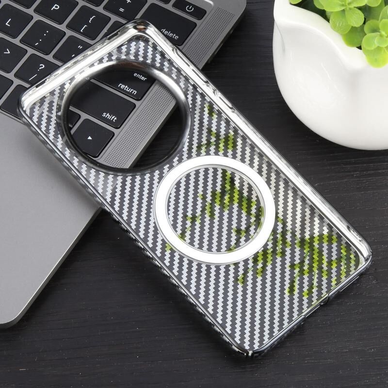 Θήκη τηλεφώνου Huawei Mate 60 Pro /60 Pro+ με επένδυση ανθρακονήματος 6D, διαφανής, με MagSafe, από PC (Ασημί Αστερόφωτο).