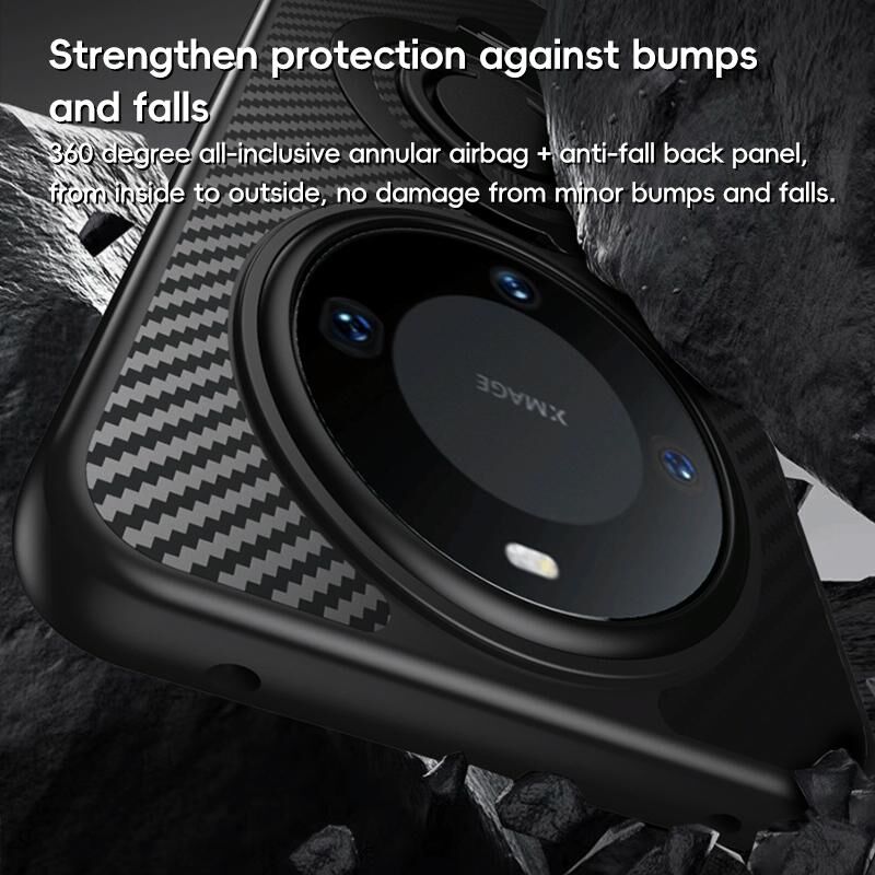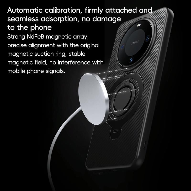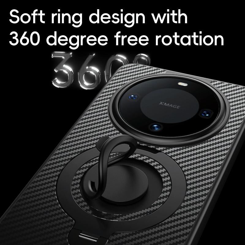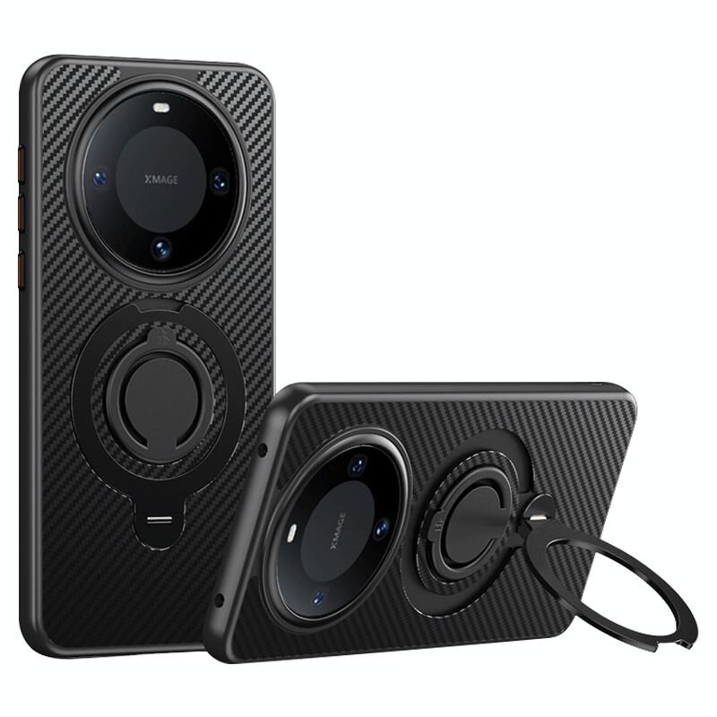Θήκη τηλεφώνου MagSafe από ανθρακονήματα για Huawei Mate 60 Pro / 60 Pro+ με περιστρεφόμενη βάση 360 μοιρών (Μαύρο)