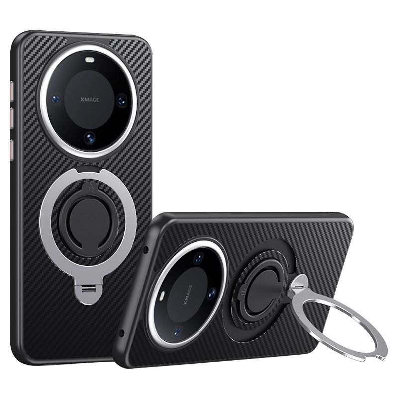 Θήκη τηλεφώνου MagSafe από ανθρακονήματα για Huawei Mate 60 Pro / 60 Pro+ με περιστρεφόμενη βάση 360 μοιρών (Μαύρο Ασημί)