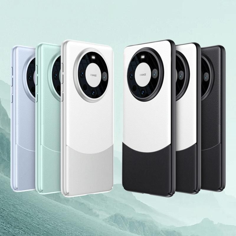 Για το Huawei Mate 60 Pro/60 Pro+ Skin feel PC + Plain Leather Phone Case (Cyan)