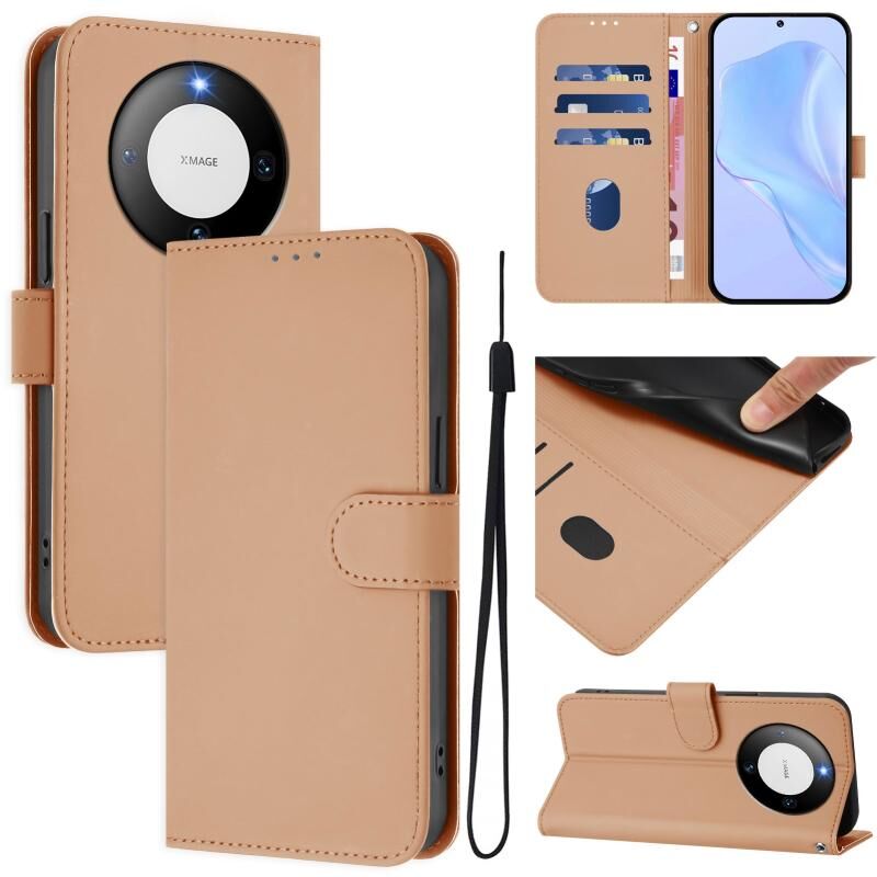 Για το Huawei Mate 60 Pro / 60 Pro + Skin Feel Solid Color δερμάτινη θήκη τηλεφώνου με κορδόνι (Nude)