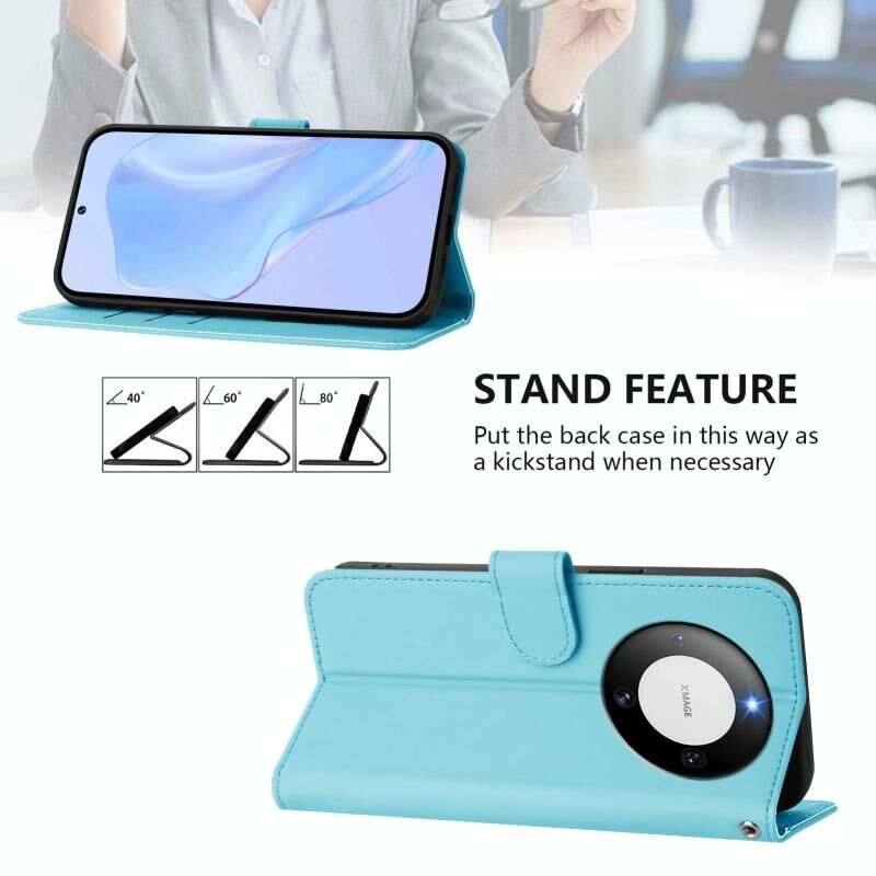 Για το Huawei Mate 60 Pro / 60 Pro + Skin Feel Solid Color δερμάτινη θήκη τηλεφώνου με κορδόνι (Sky Blue)