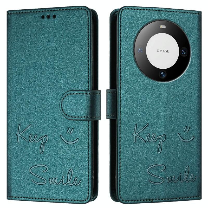 Για Huawei Mate 60 Pro / 60 Pro + Χαμόγελο ανάγλυφο RFID δερμάτινη θήκη τηλεφώνου (Πράσινο παγώνι)