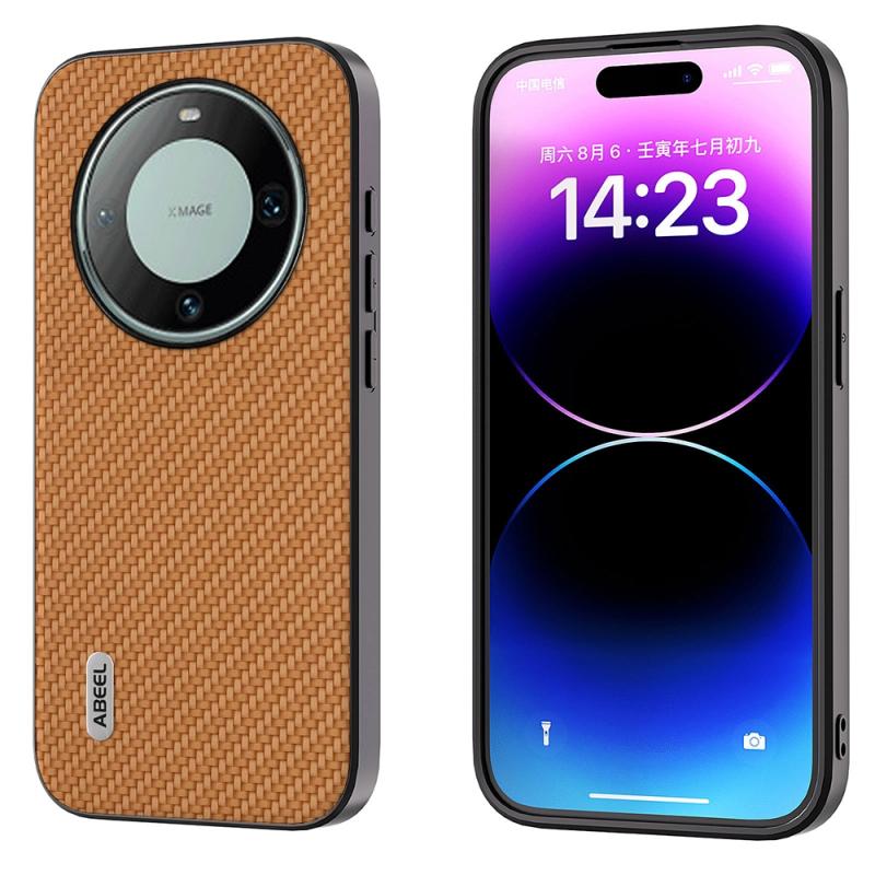 For Huawei Mate 60 Pro ABEEL Carbon Fiber Texture Protective Phone Case(Light Brown)