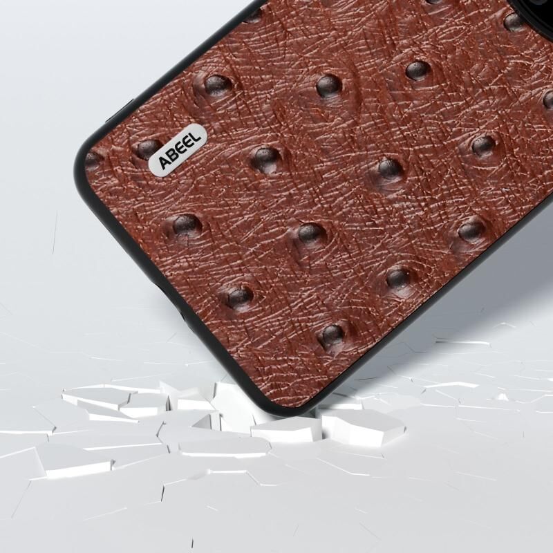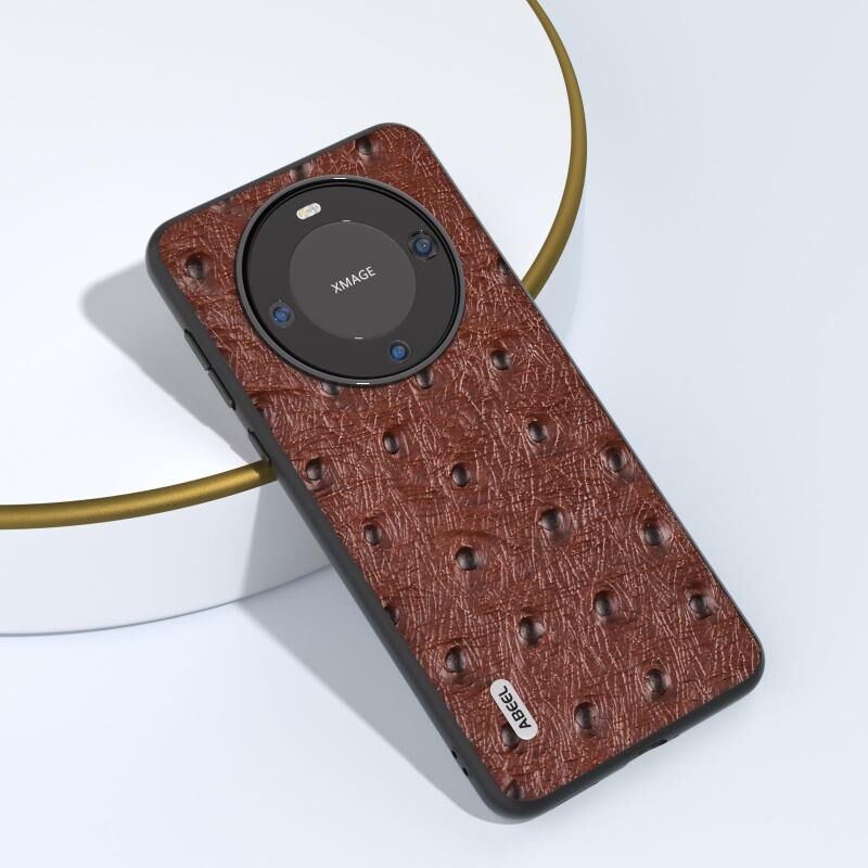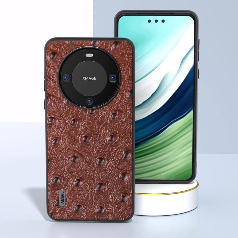 Θήκη τηλεφώνου από γνήσιο δέρμα στρουθοκάμπου για Huawei Mate 60 Pro ABEEL (Καφέ)